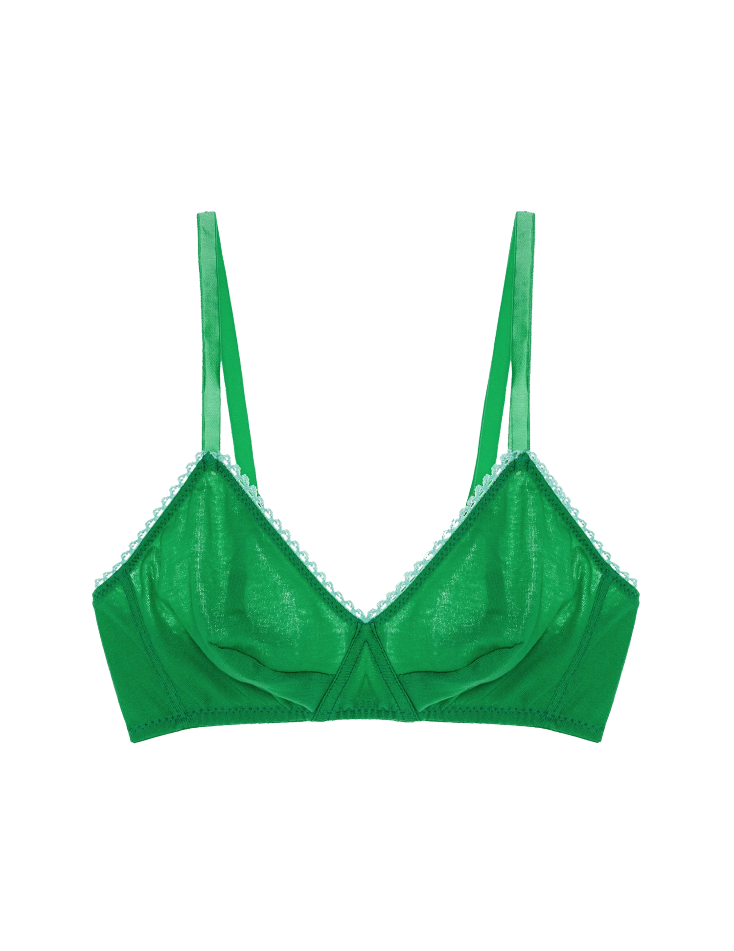 Cut from GOTS certified organic cotton rib fabric, the Antonia bralette made its debut in 2000, and to this day is sewn by the same hands in the same local factory. Organic cotton rib fabric is accompanied by playful crochet trim detailing for a bralette that is sustainable, feminine and comfortable. Wear it with the matching Isabella Panty or Mabel Hipster. See additional colorways.