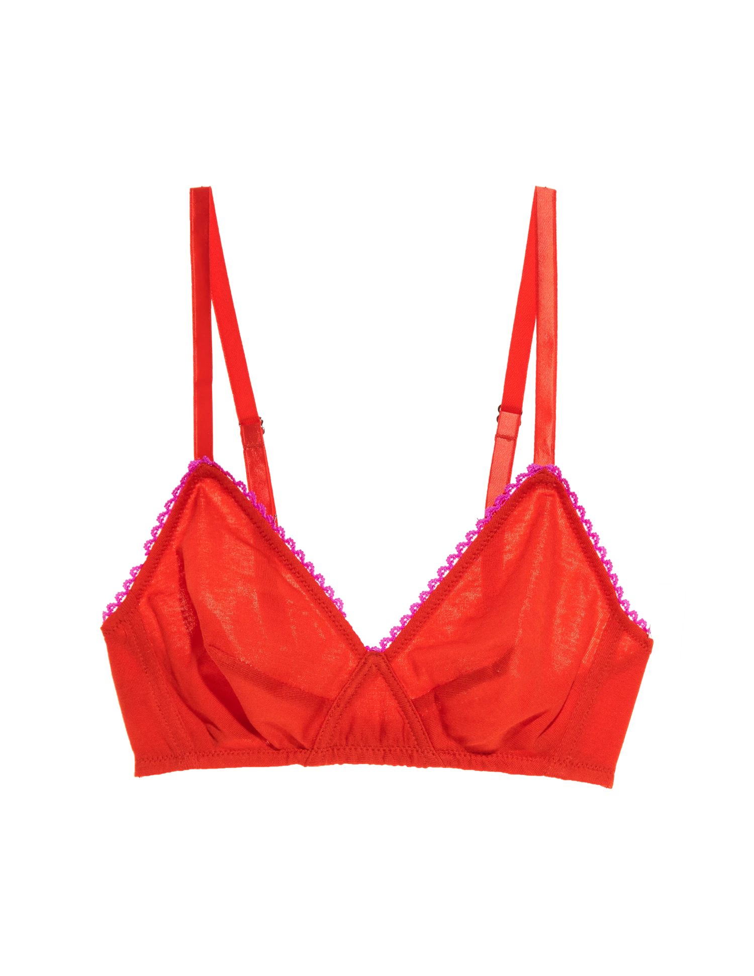 Cut from GOTS certified organic cotton rib fabric, the Antonia bralette made its debut in 2000, and to this day is sewn by the same hands in the same local factory. Organic cotton rib fabric is accompanied by playful crochet trim detailing for a bralette that is sustainable, feminine and comfortable. Wear it with the matching Isabella Panty or Stella Thong. See additional colorways.