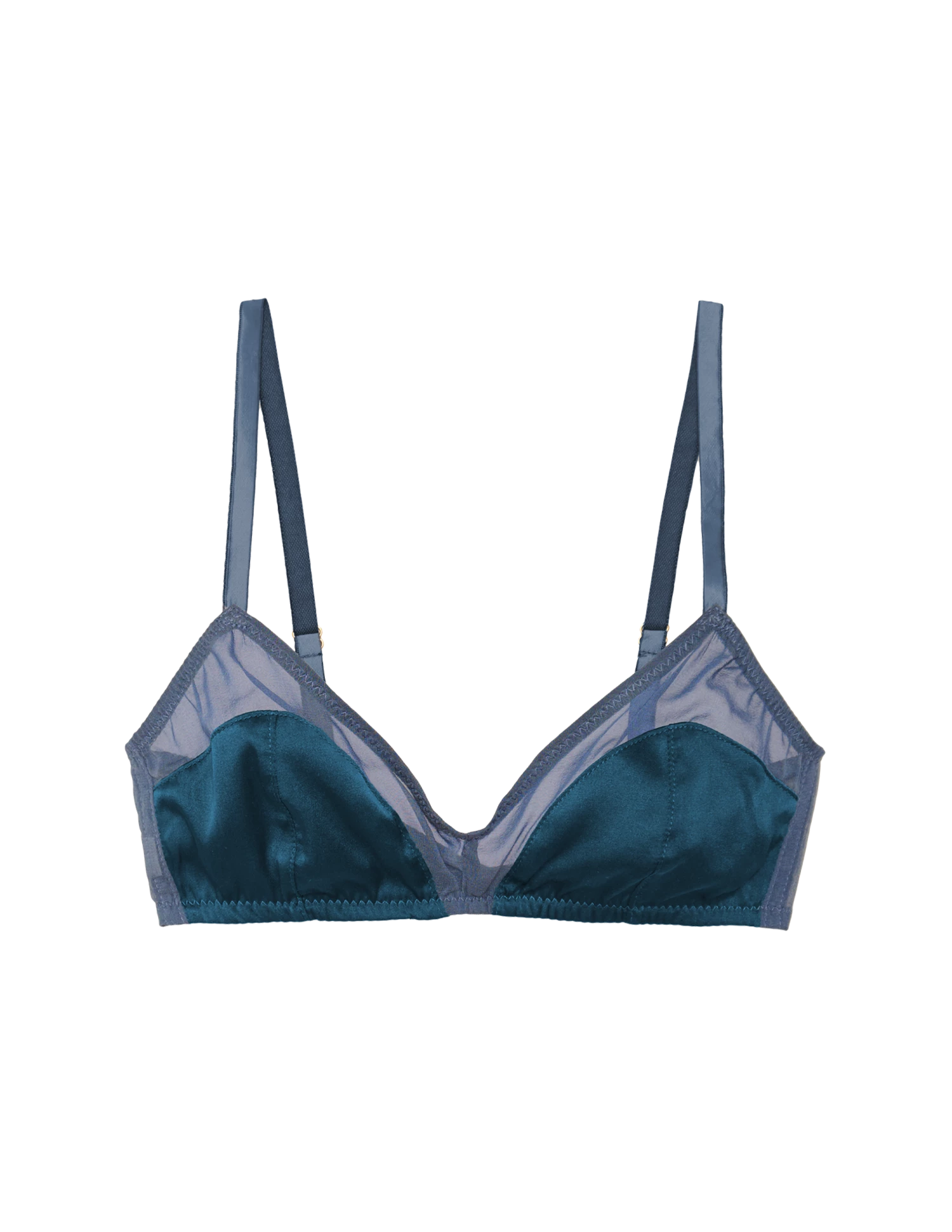 Silk chiffon bralette with silk charmeuse soft-cup detail. Adjustable straps. Hook & eye back closure.Ā Make it aĀ pair with the matchingĀ Aaron Panty.Ā SeeĀ additionalĀ colorways.