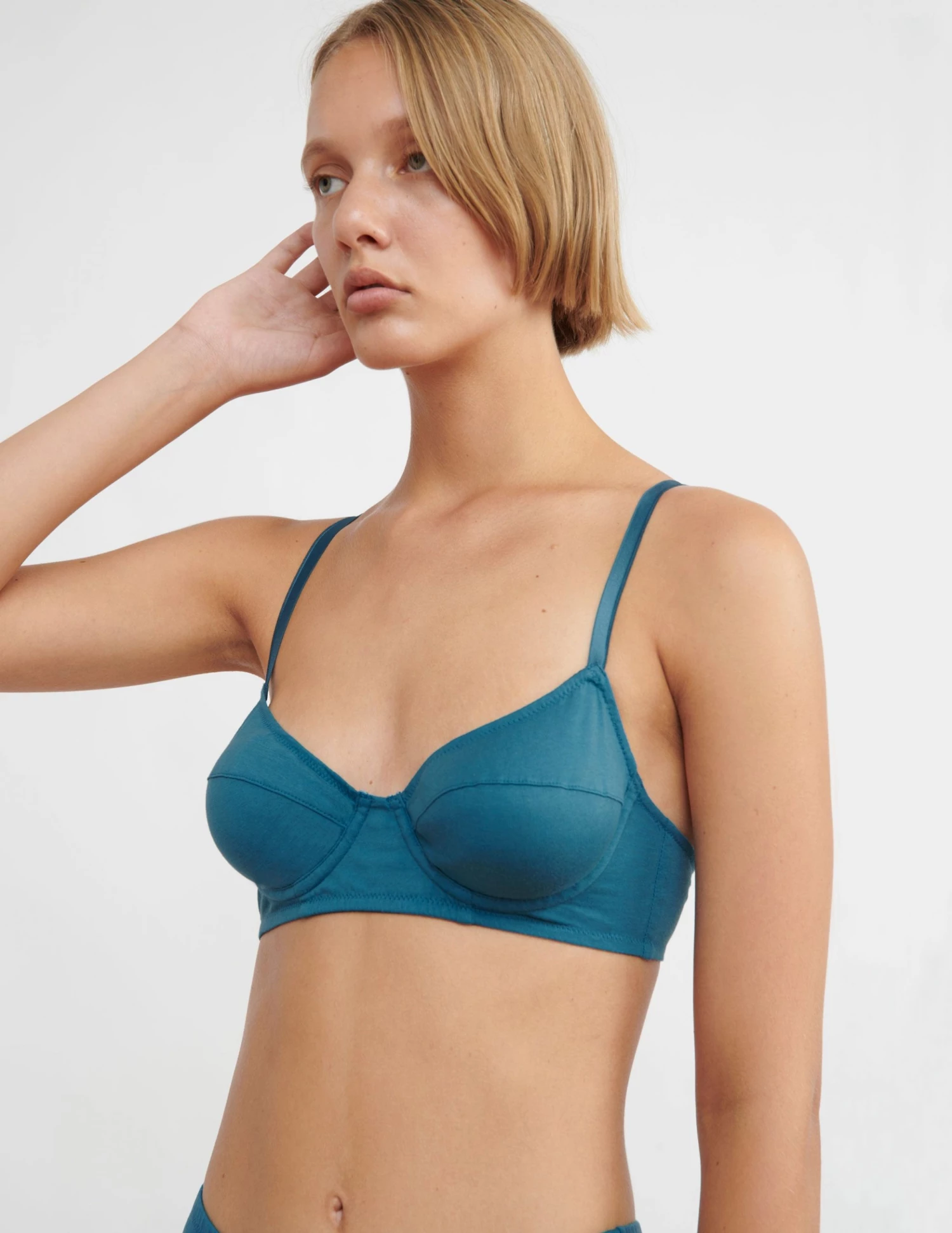 The Beau features seamed cups for a smooth fit, adjustable straps, and a double hook and eye closure in back. Pairs nicely with the Delphine Panty or Bodhi Panty. View other colorways.