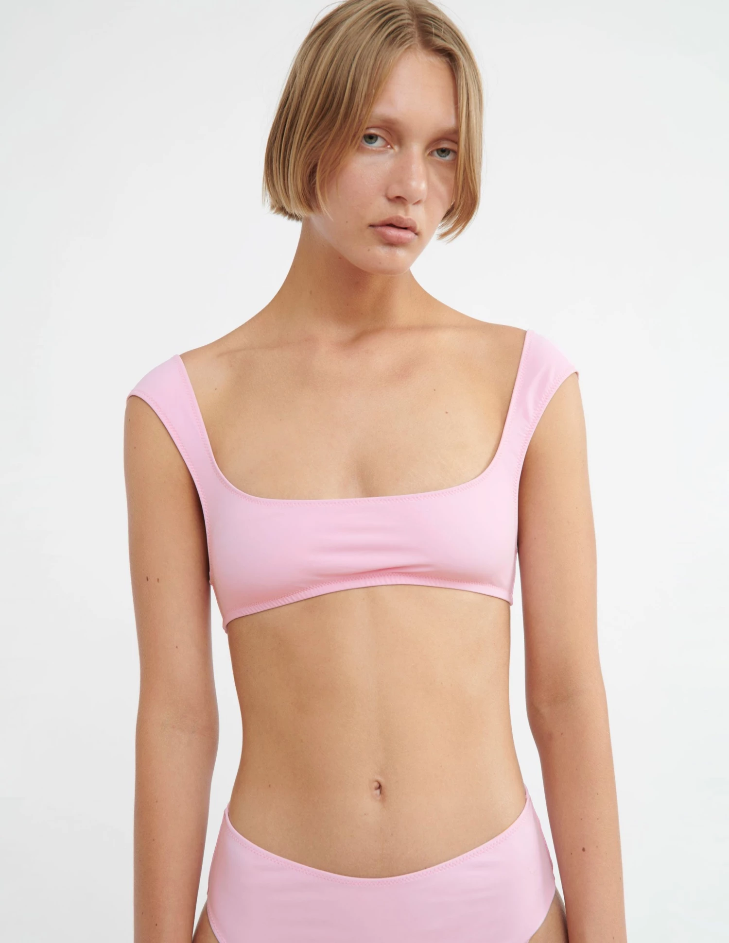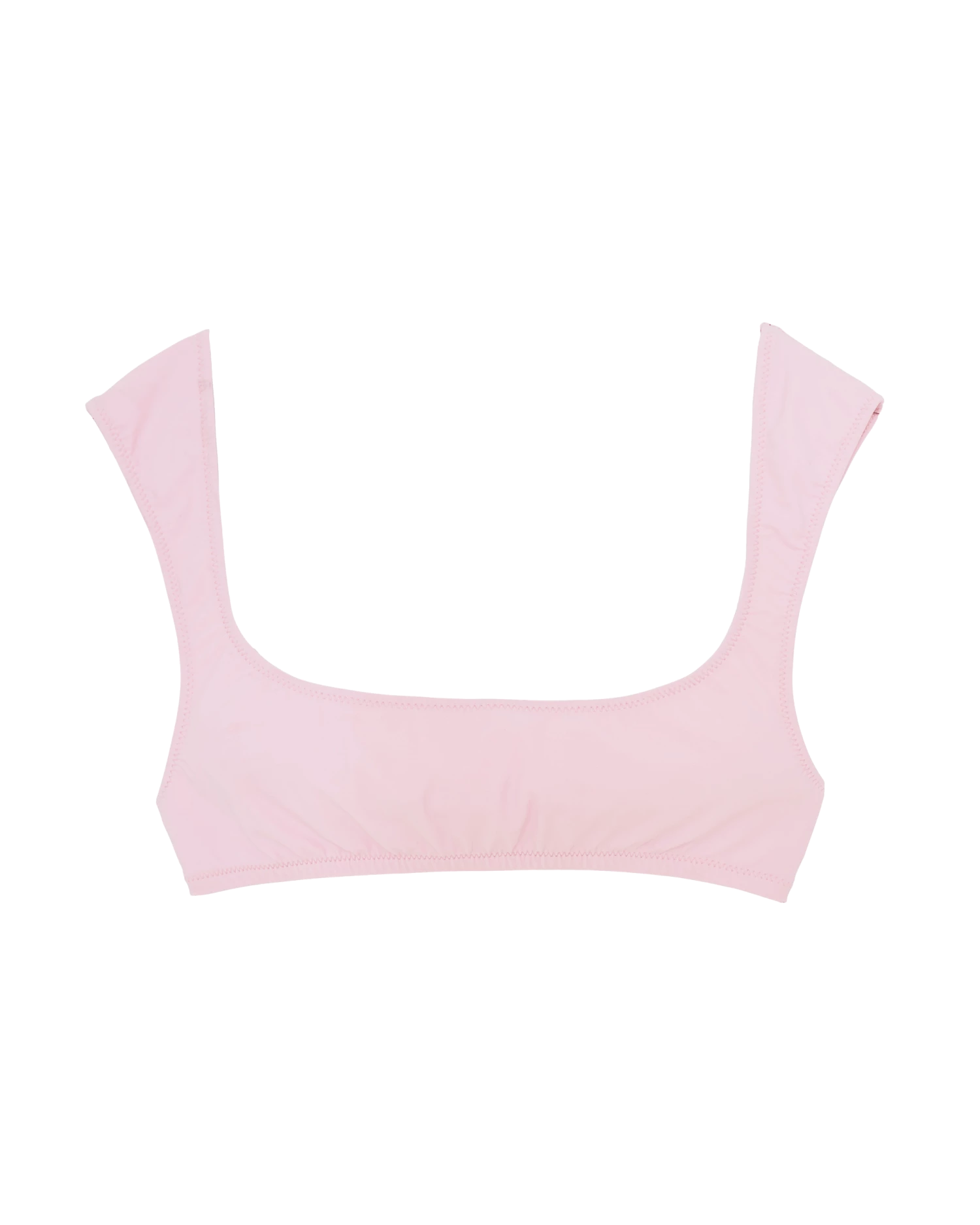 Cut in a modern romantic silhouette with clean lines, the Flora Bikini Top features a generously scooped neckline and tiny cap sleeves. Wear it with the Ulla. See additional colorways.