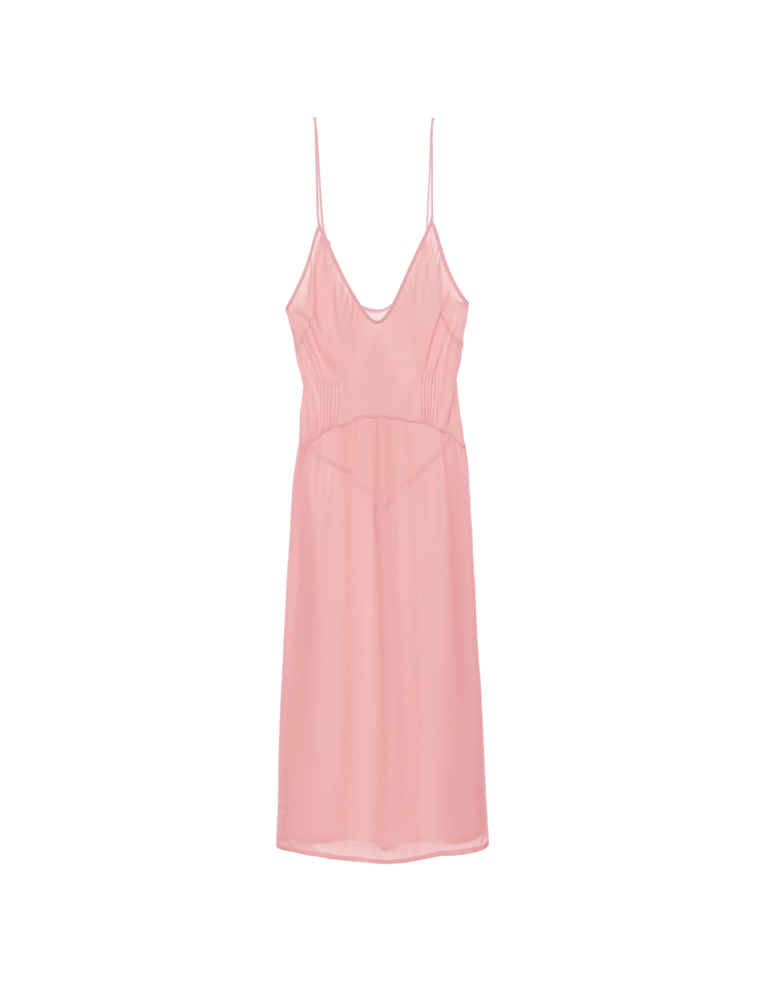 Fitted washed silk georgette slip with fine pintucking detail for added shape through the waist. Falls right at the knee. See additional colorways.