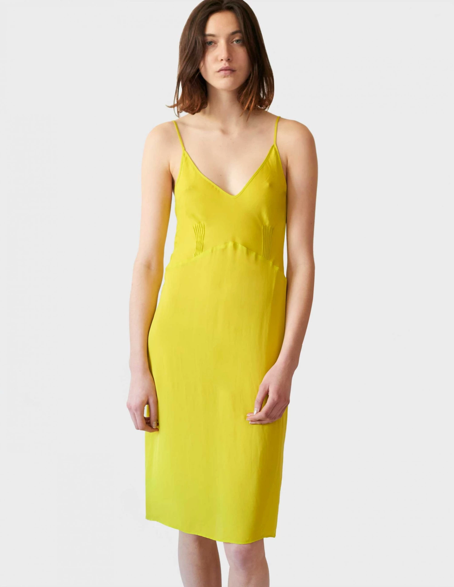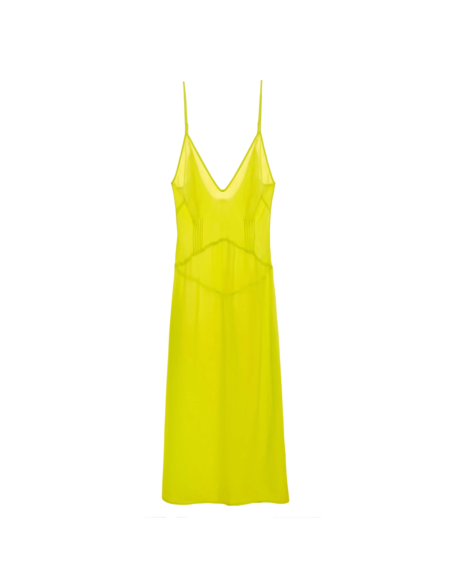 Fitted washed silk georgette slip with fine pintucking detail for added shape through the waist. Falls right at the knee. See other available colorways here.Â