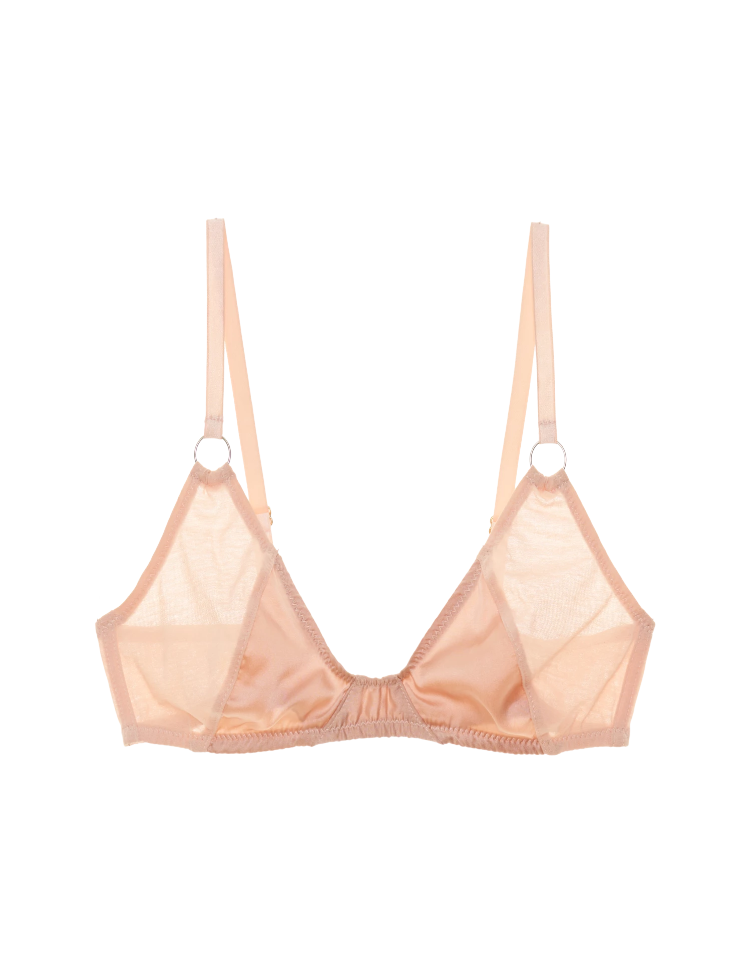 Sheer cotton crepe and glossy silk stretch charmeuse create a stylishly simple bralette with an effortlessly flattering fit.  Best recommended for A & B cup sizes.Wear it with the matching Yahvi Panty. See other available colorways here.Â