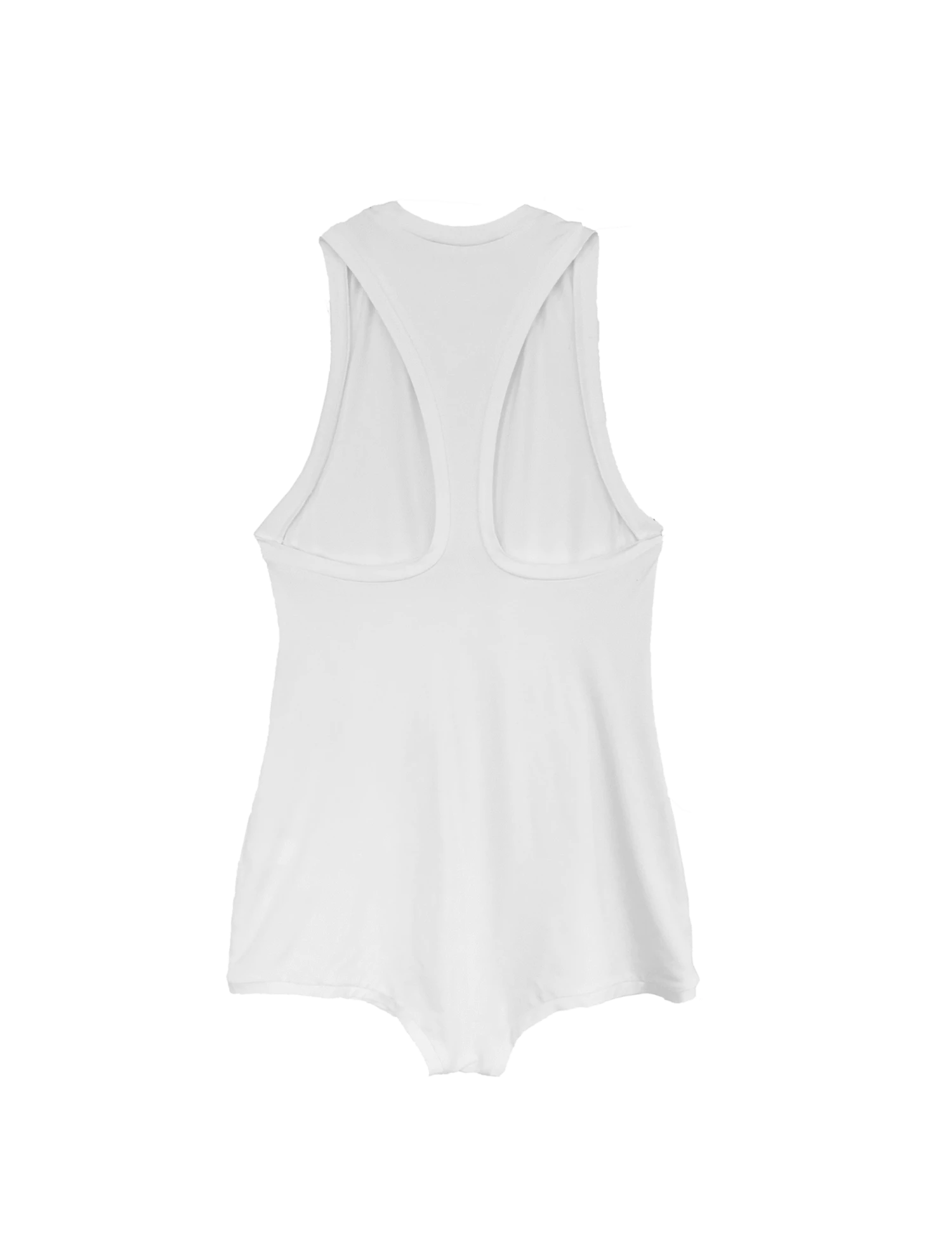 Cut from GOTS certified organic cotton fabric, we converted your favorite racer back tank top to a bodysuit. A wardrobe staple that can be worn alone or layered, under pants or skirts. View other organic cotton styes.