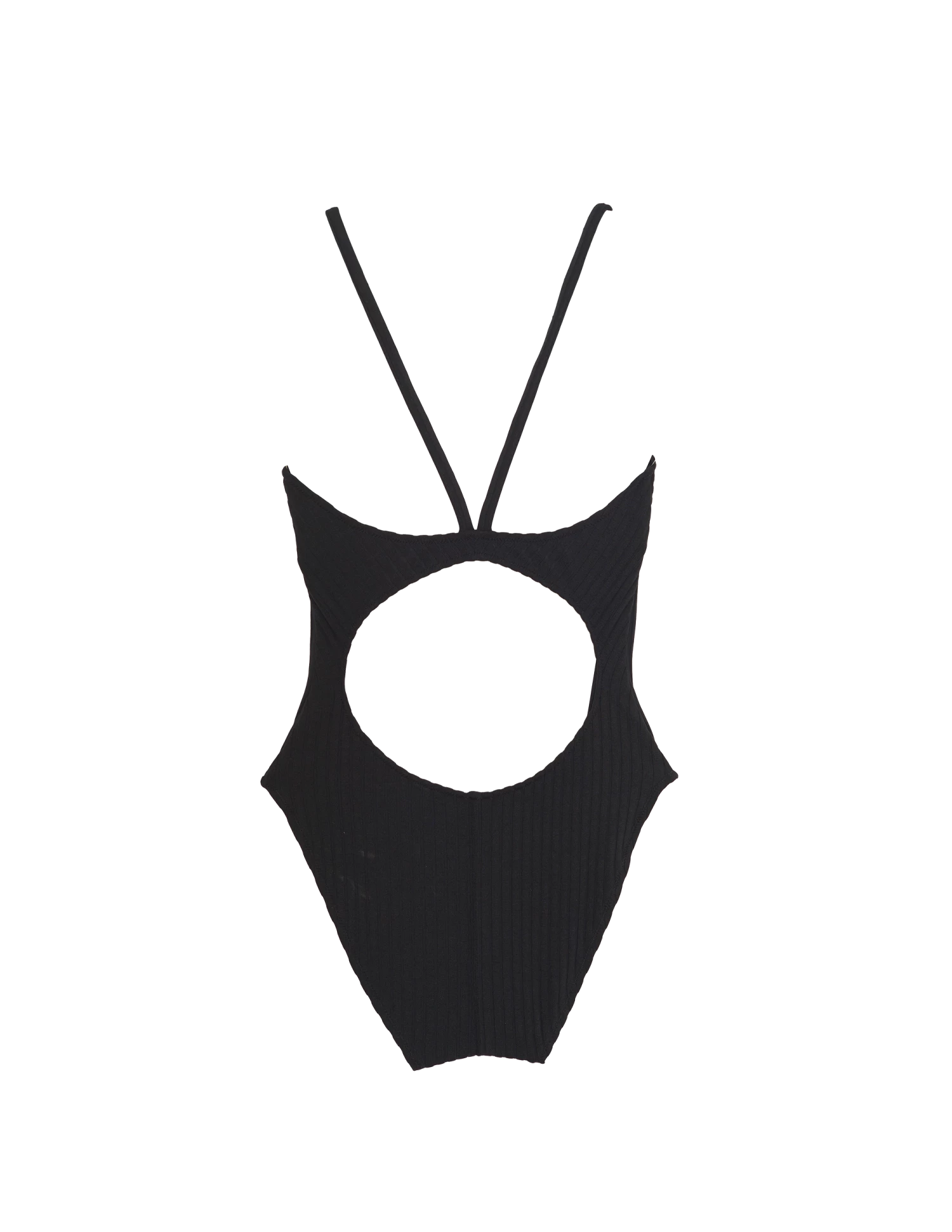 A modern one piece that works double duty as a bodysuit under a skirt or pants. Cut in stretchy wide rib fabric that molds to the body, features include a bra-like bodice and cutouts front and back.