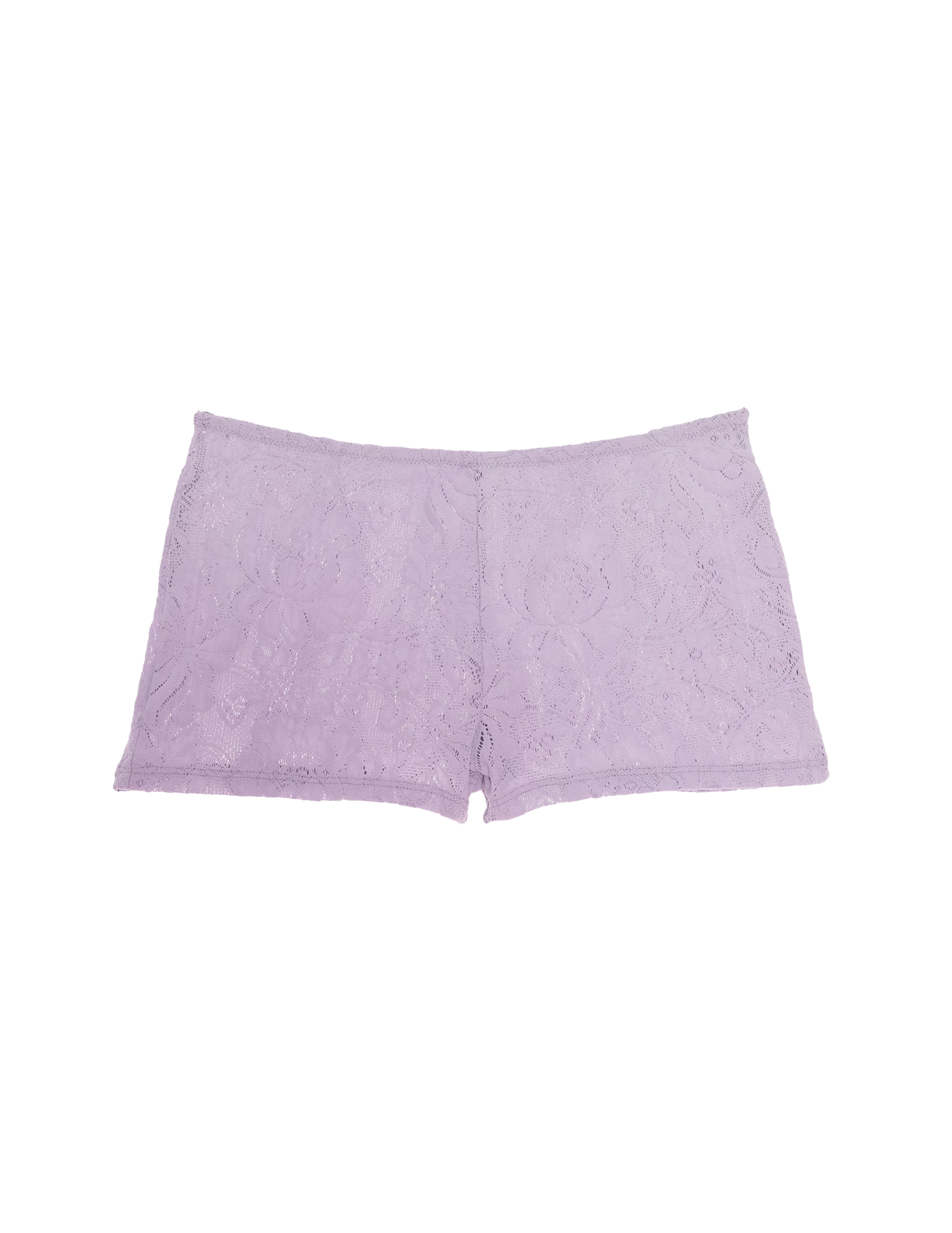 A casually chic lace lounge short for evenings spent at home.  Cut from soft stretch French lace, finish your look with the Gaia T-Shirt or a lace bra or bralette.  See additional colorways.Â