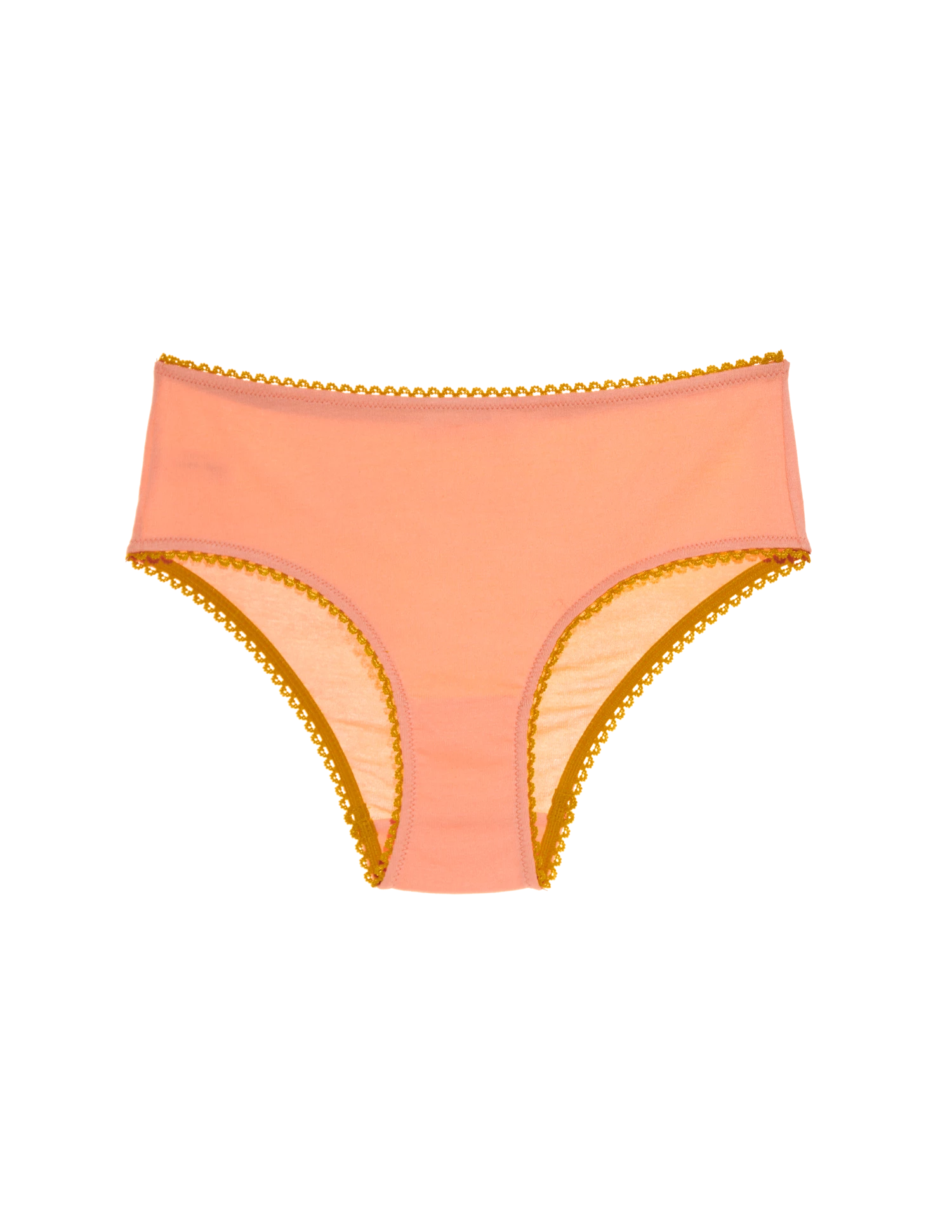 Made from GOTS certified organic cotton rib fabric and cut in a hipster shape with moderate coverage. The Josephine is outlined in a soft crochet trim for a look that celebrates casualness, comfort and care. Pairs nicely with the Antonia Bralette. See additional colorways.