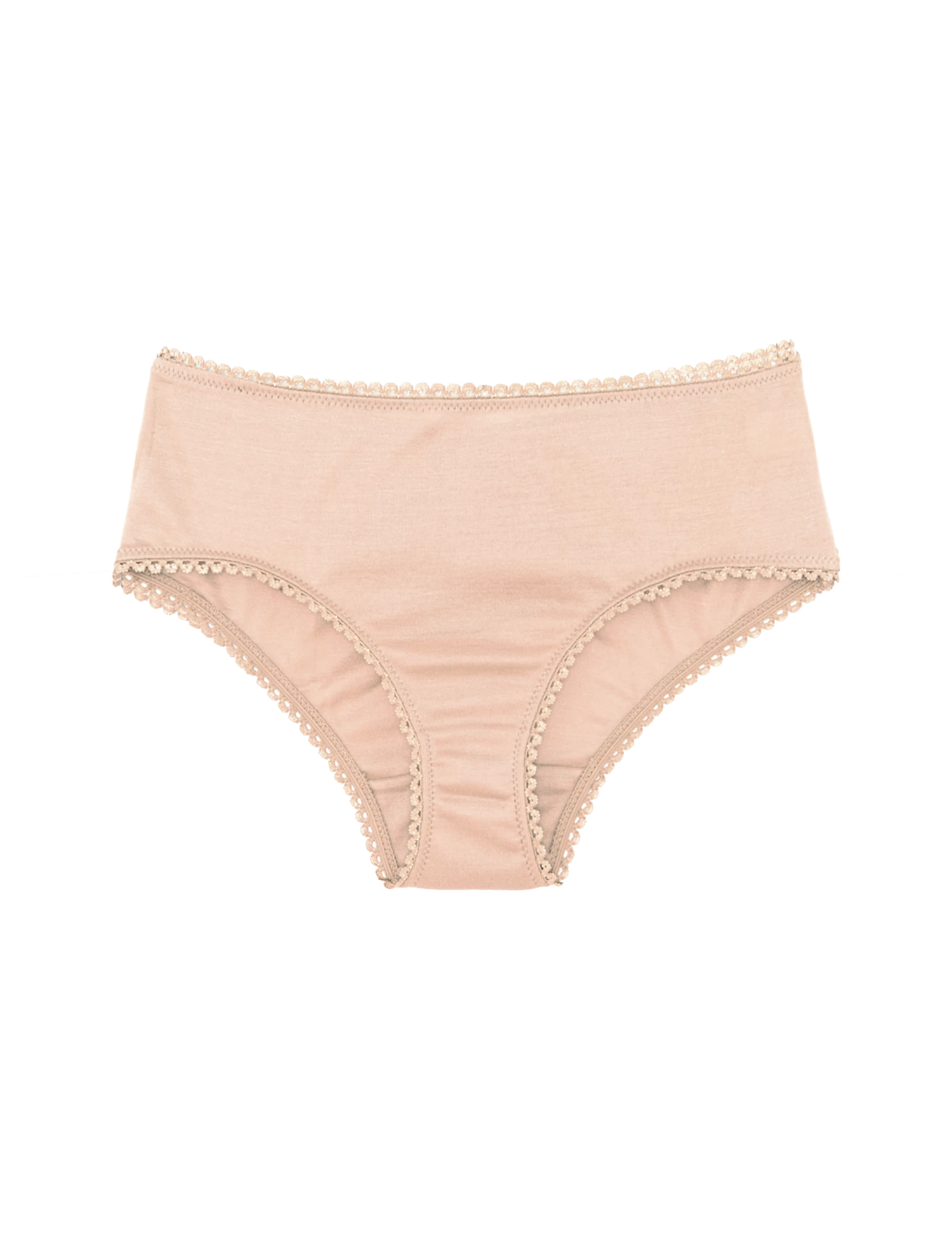 Made from GOTS certified organic cotton rib fabric and cut in a hipster shape with moderate coverage. The Josephine is outlined in a soft crochet trim for a look that celebrates casualness, comfort and care. Pairs nicely with the Antonia Bralette. See additional colorways.