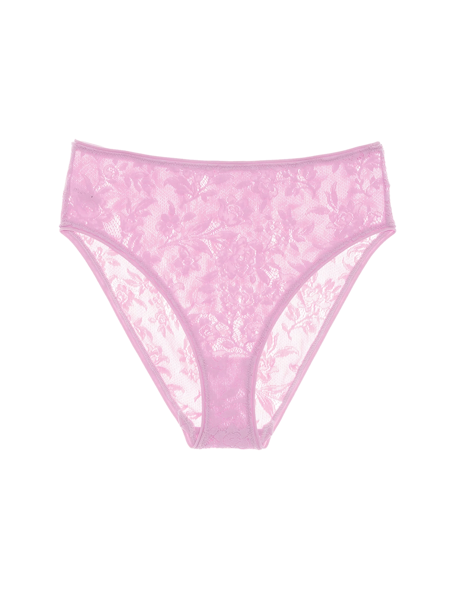 Lengthen your legs with this high cut bikini bottom made from soft French stretch lace. Wear it with the Waverly Underwire Bra or Tamara Bralette. See additional colorways.