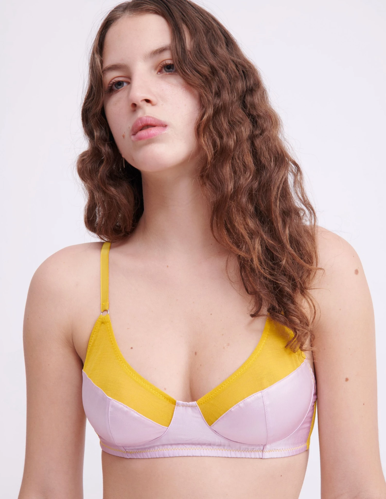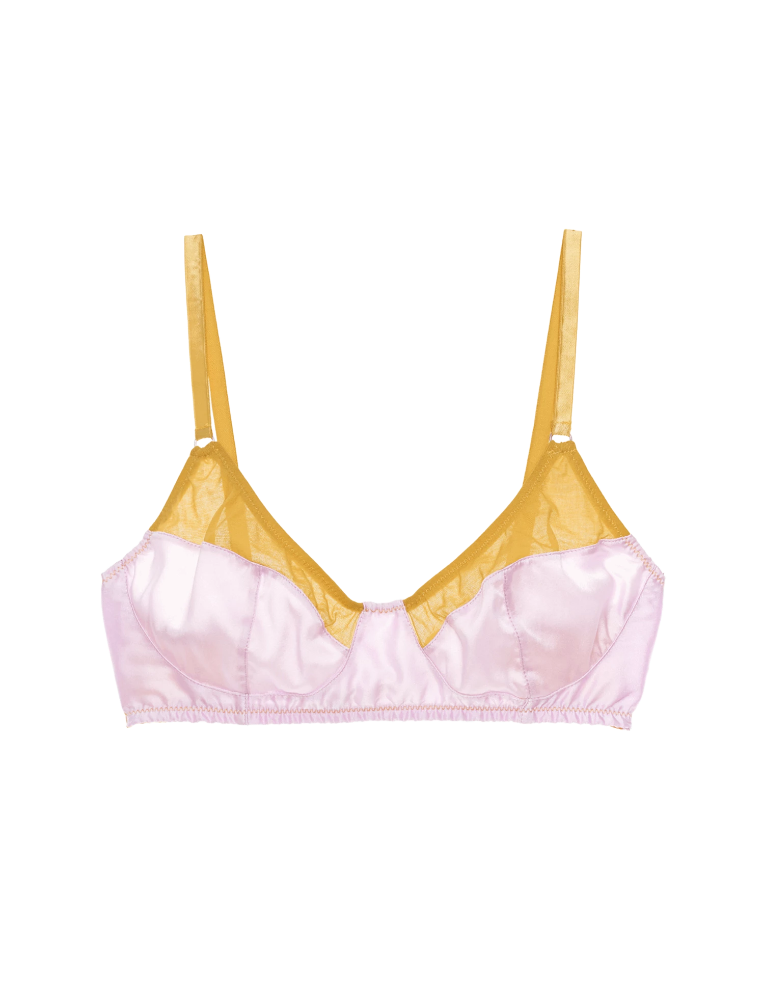 Glossy silk charmeuse and subtly sheer cotton crepe come together in this full coverage, soft cup bralette to create a look that is chic and modern. Make it a set with the matching Yahvi Panty. See additional colorways.