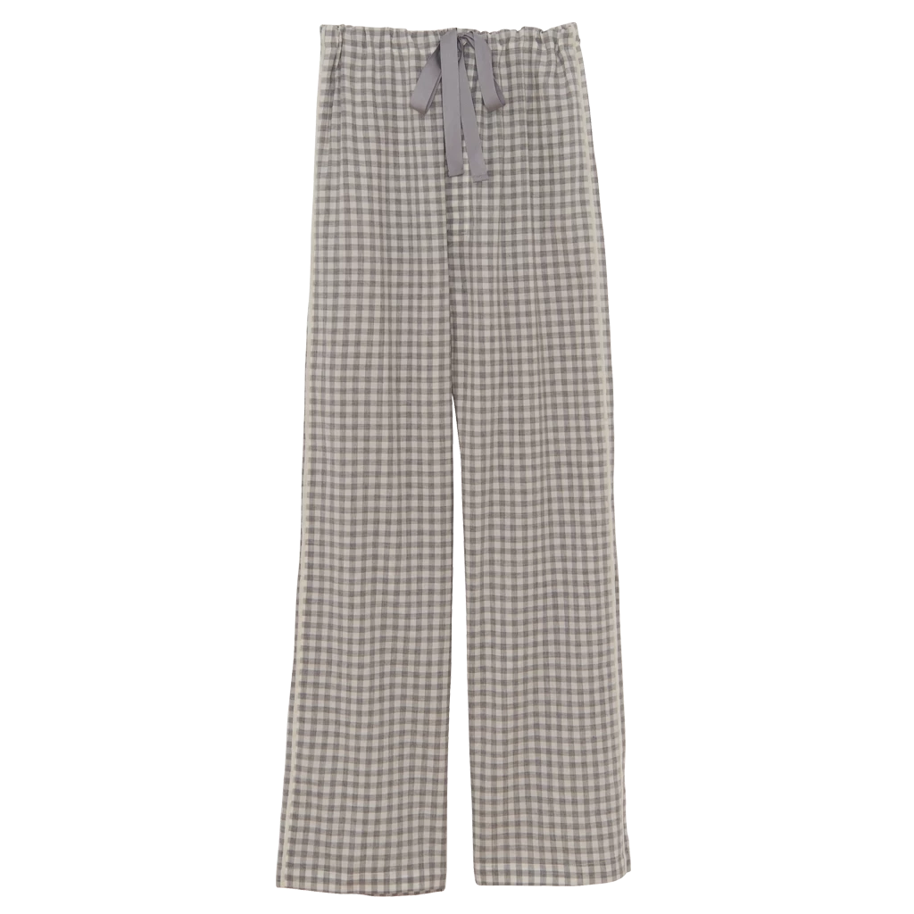 Classic Cotton Gingham pajama bottoms. Contrasting delicate silk chiffon piping. Mother of pearl buttons & cotton twill tape drawstring. See the matching Kate Pajama Top or Shelby Pajama Top. See other available colorways here.
