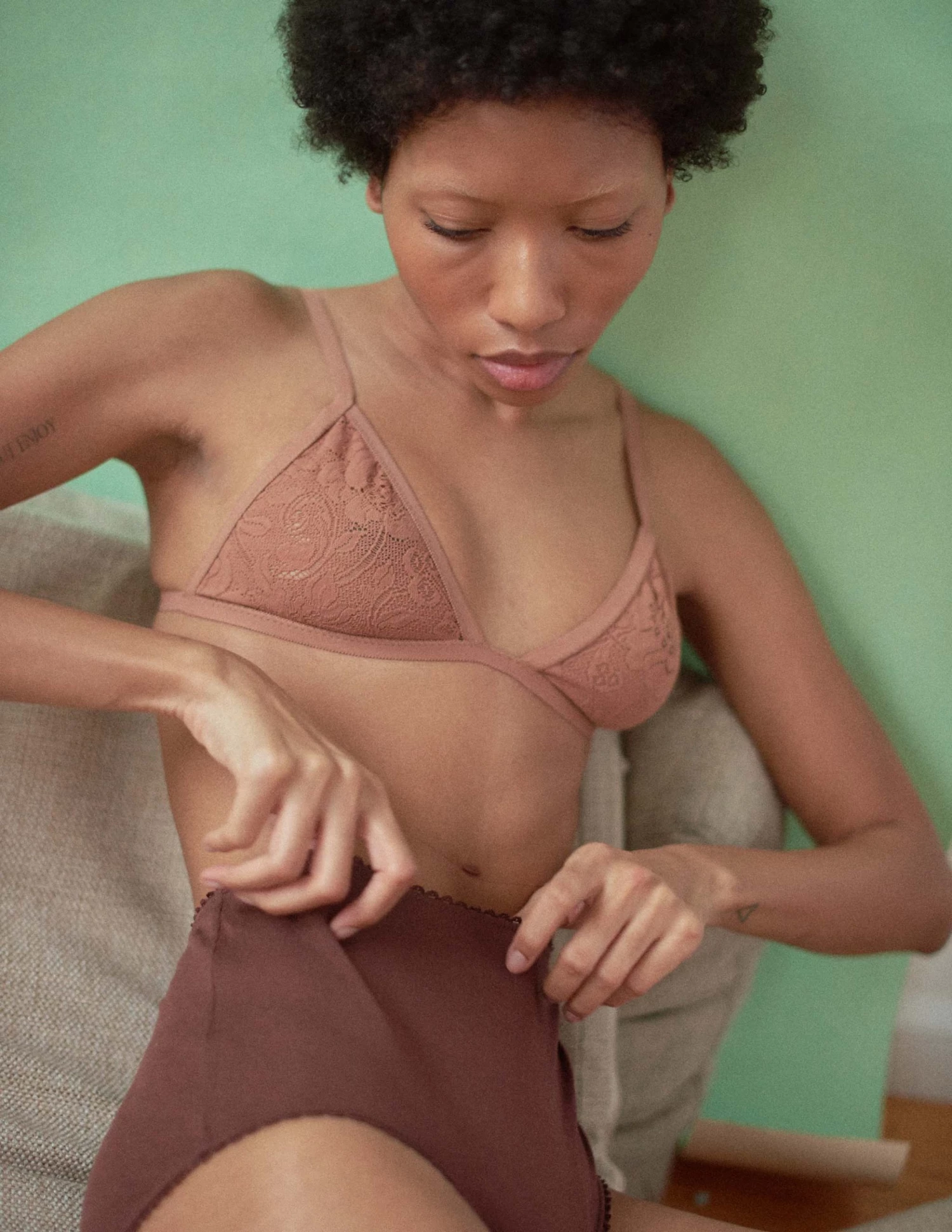 Cut from GOTS certified organic cotton rib fabric, meet the granny panty that is playful, charming and of course, super comfy. Made from organic cotton rib fabric and rendered each season in customer colors and edged in a sweet crochet trim, go ahead and get your granny on. Pair it with the matching Antonia Bralette. See additional colorways.
