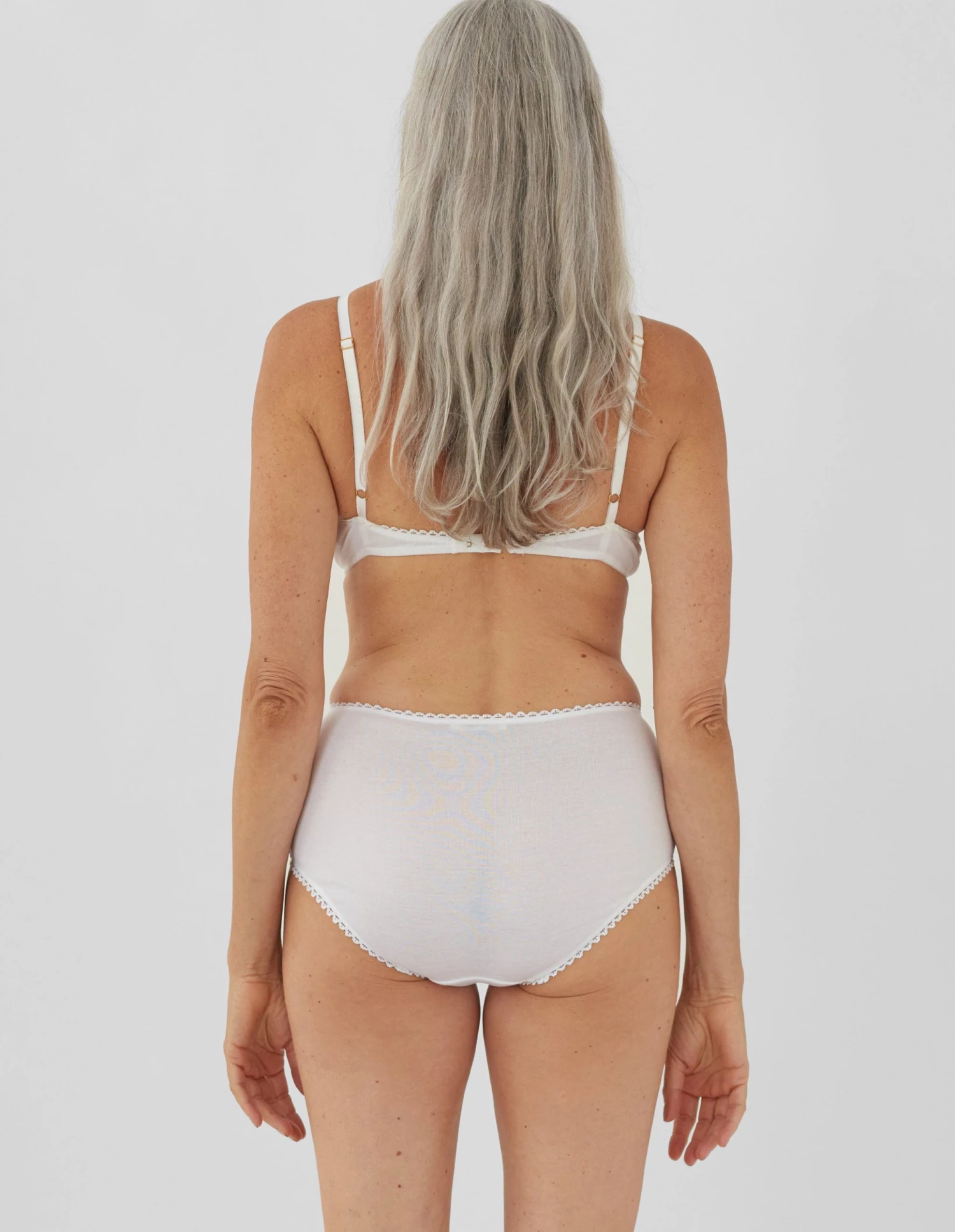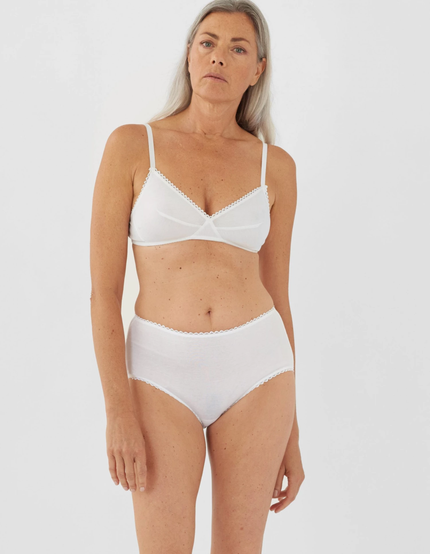 Cut from GOTS certified organic cotton rib fabric, meet the granny panty that is playful, charming and of course, super comfy. Made from organic cotton rib fabric and rendered each season in customer colors and edged in a sweet crochet trim, go ahead and get your granny on. Pair it with the matching Antonia Bralette. See additional colorways.