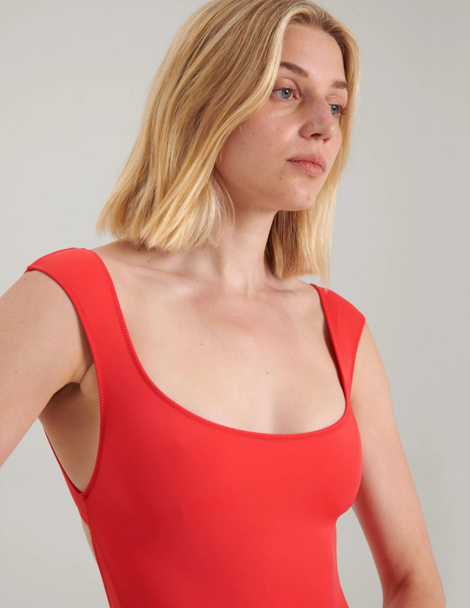 Chic and modern, Frida features the clean lines and subtle detailing that Araks is known for. A wide low set neckline flatters with the smallest of cap sleeves and a scooped out back. Works well as a bodysuit too, under pants or a skirt. See additional colorways.