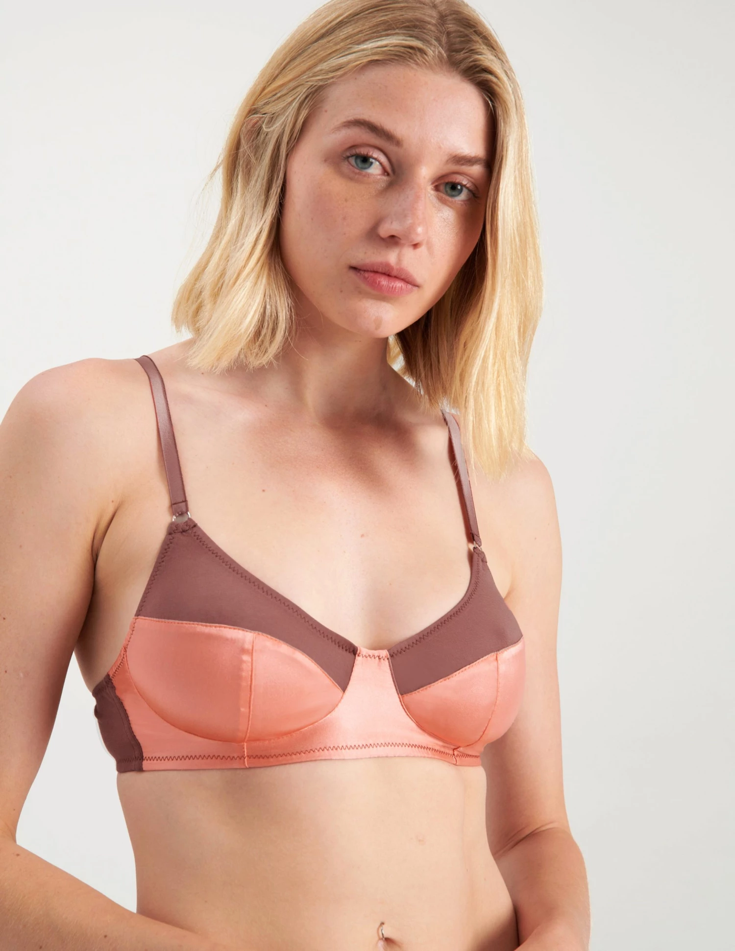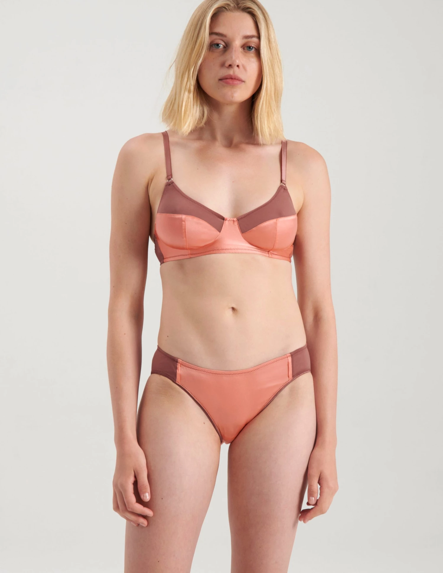 Glossy silk charmeuse and subtly sheer cotton crepe come together in this full coverage, soft cup bralette to create a look that is chic and modern. Make it a set with the matching Yahvi Panty. See additional colorways.