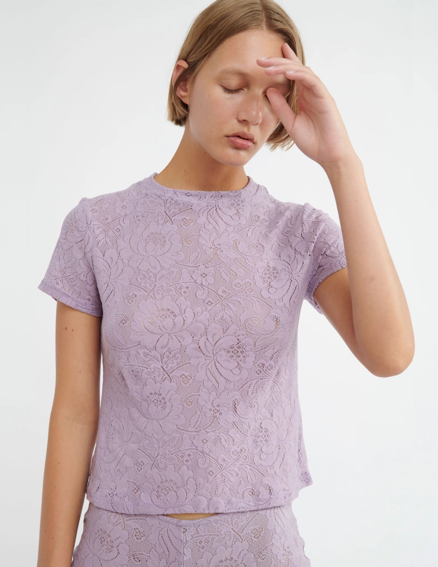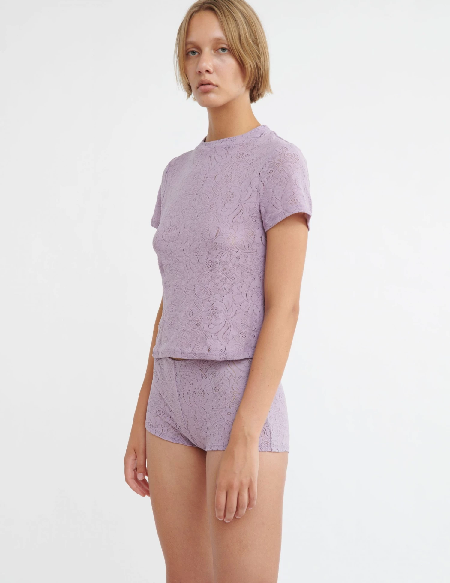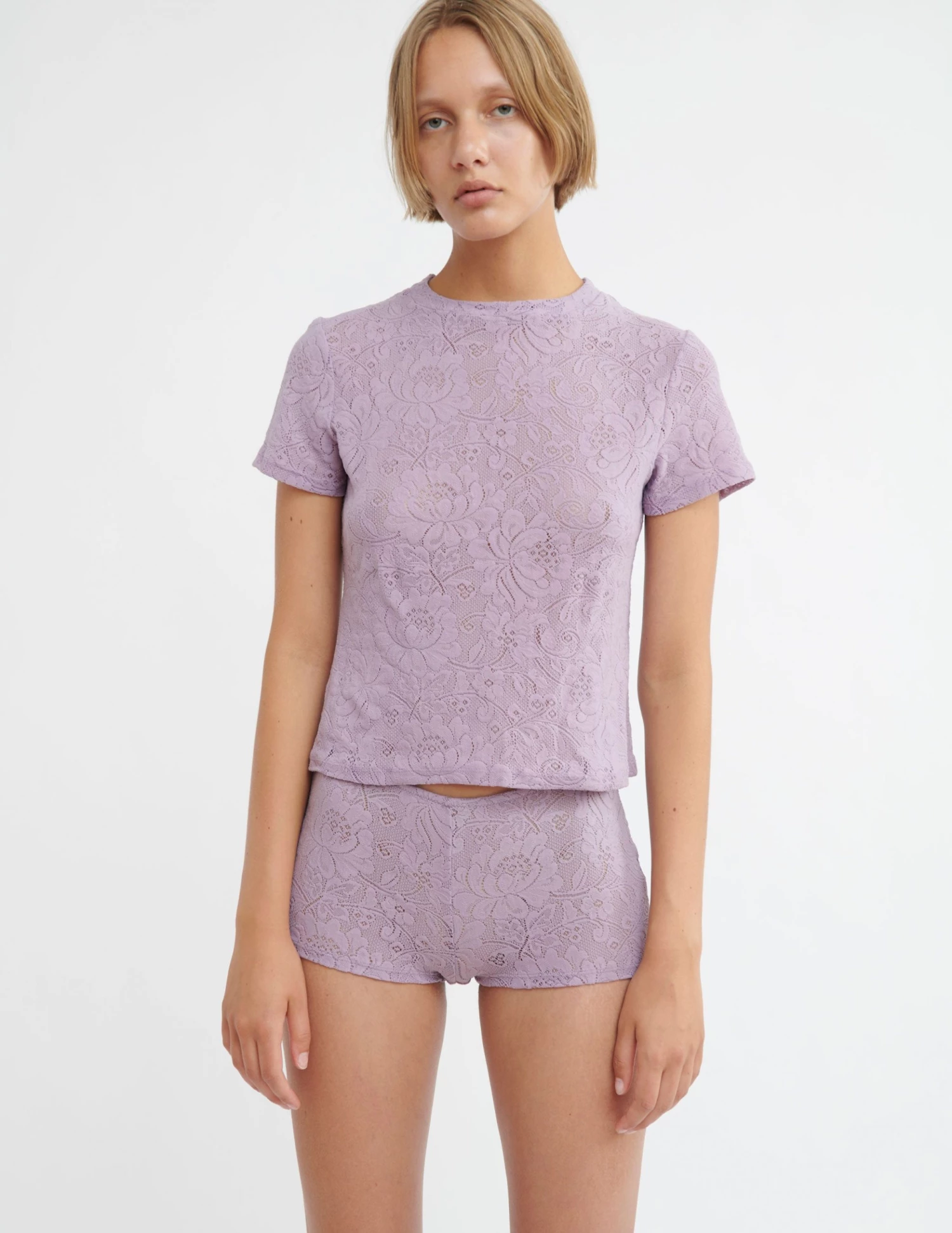 A new versatile foundation piece to build day and night looks around.  A chic modern tee, cut from our soft French stretch lace, wear yours with jeans or underneath a jacket.   For lounging at home, make it a set with the matching Guinevere Shorts. See additional colorways.