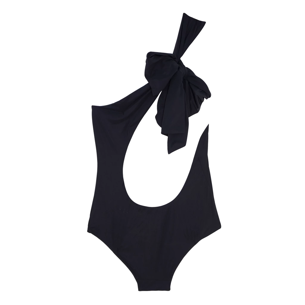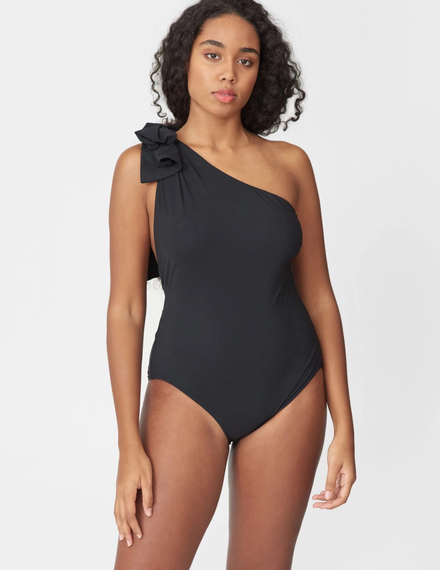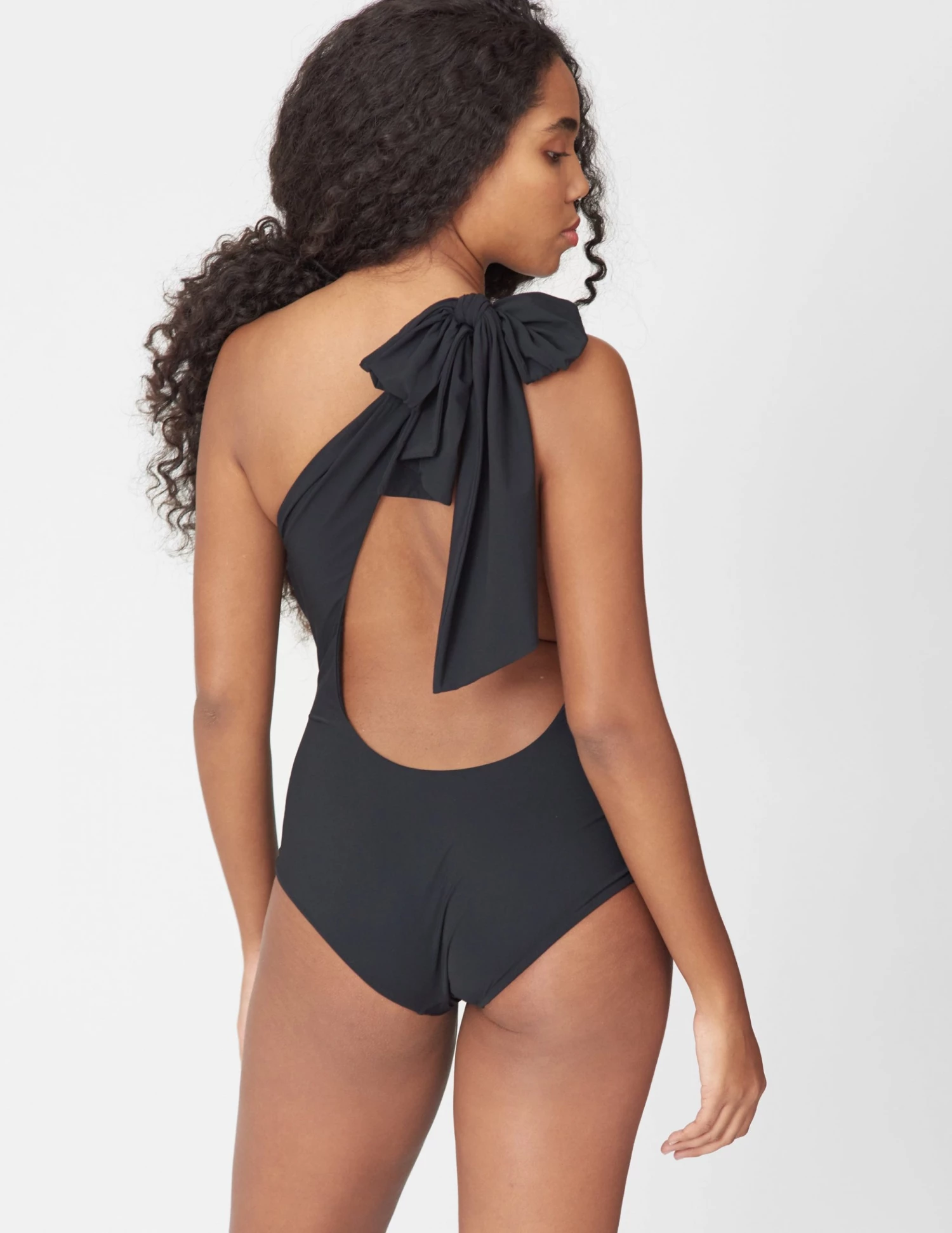 A chic single shoulder maillot featuring versatile wide ties that can be knotted or made into a bow at back. See additional colorways.