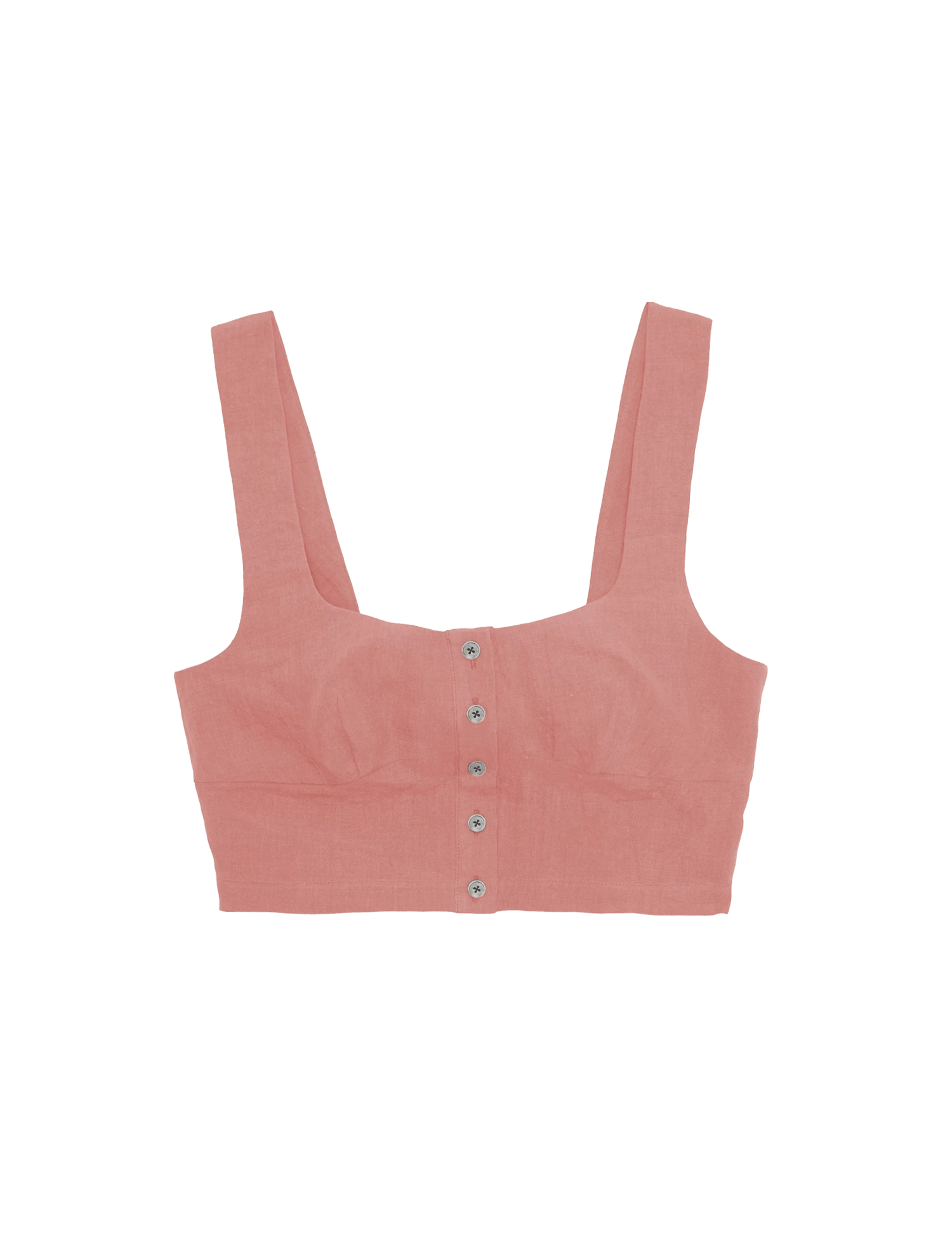 A chic modern crop top in a bustier style, the Tilly Top is cut from cotton poplin and features horn buttons down the front. Pairs nicely with the Ulya Skirt.