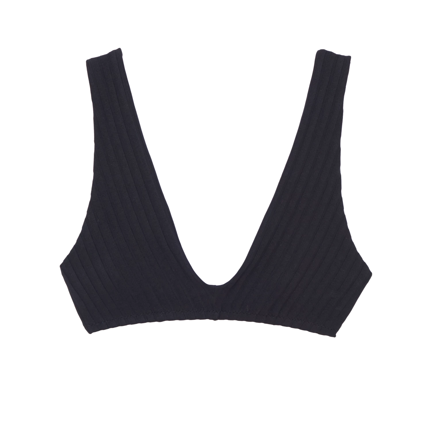 Flattering and timeless, a classic black bikini top cut from stretchy rib fabric. Wear it with the Ulla Bikini Bottom or Uri Short.  See additional colorways.
