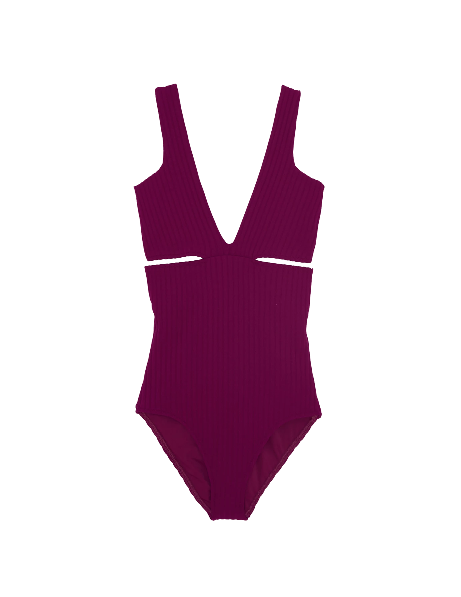 Chic and modern, the Ursa one piece is cut from stretchy rib fabric. Deep V necklines both front and back give way to slender splices that wrap around the body showing just the right amount of skin. See additional colorways here.