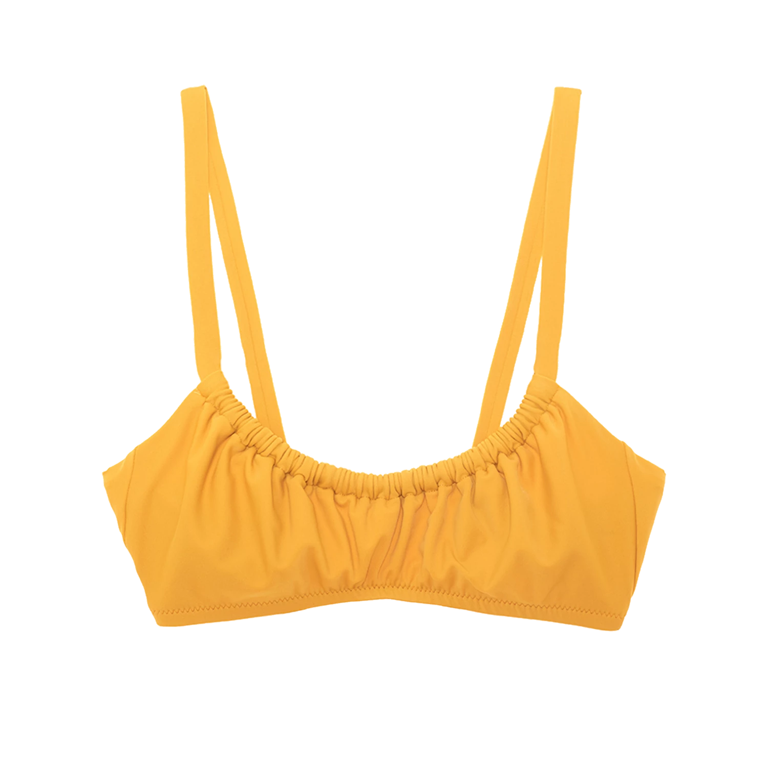 Chic and playful, the Yash bikini top features a ruched neckline and straps that tie in the back. Pair it with the Ulla Bikini Bottom. See additional colorways.
