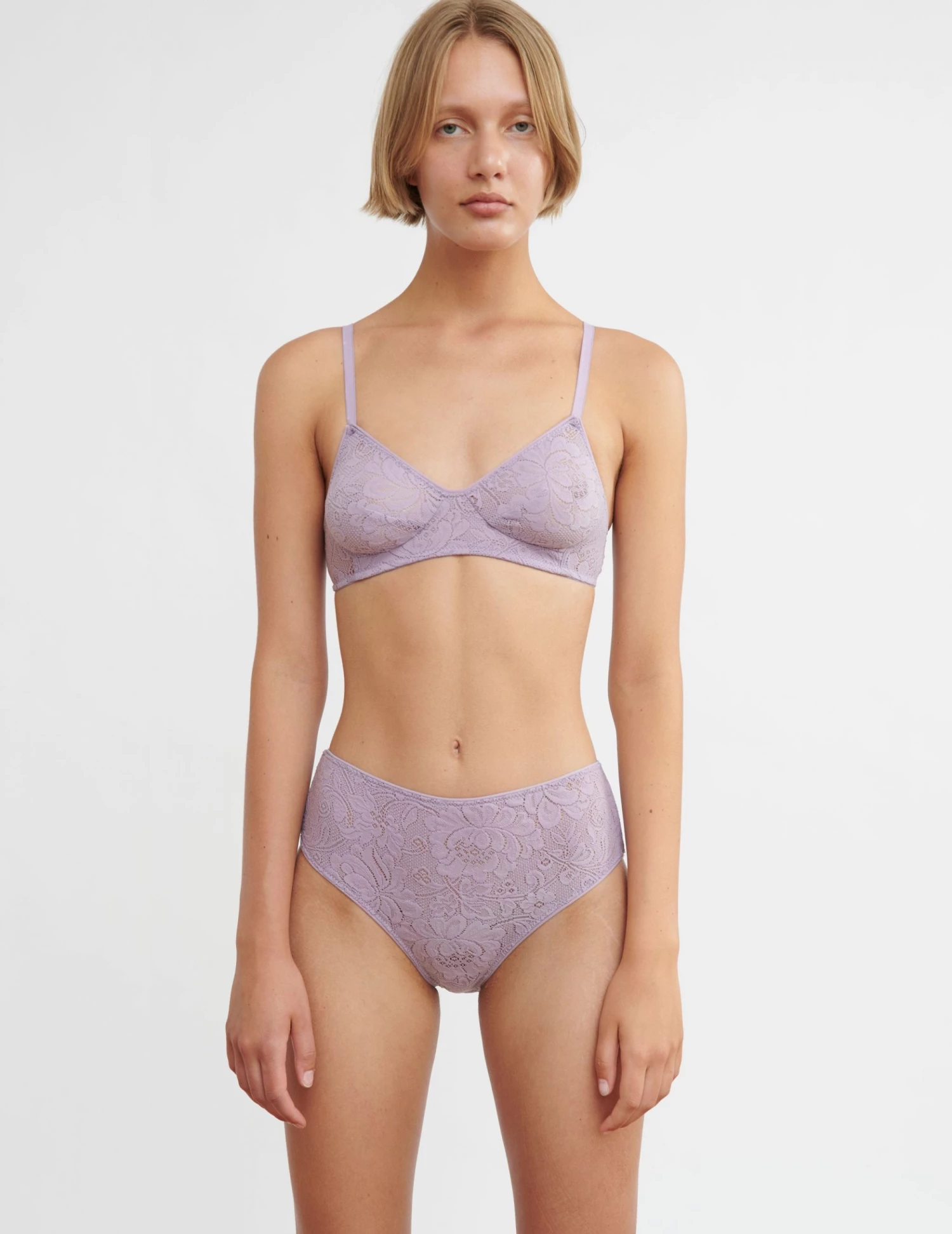 Lengthen your legs with this high cut bikini bottom made from soft French stretch lace. Wear it with the Waverly Underwire Bra or Tamara Bralette. See additional colorways.