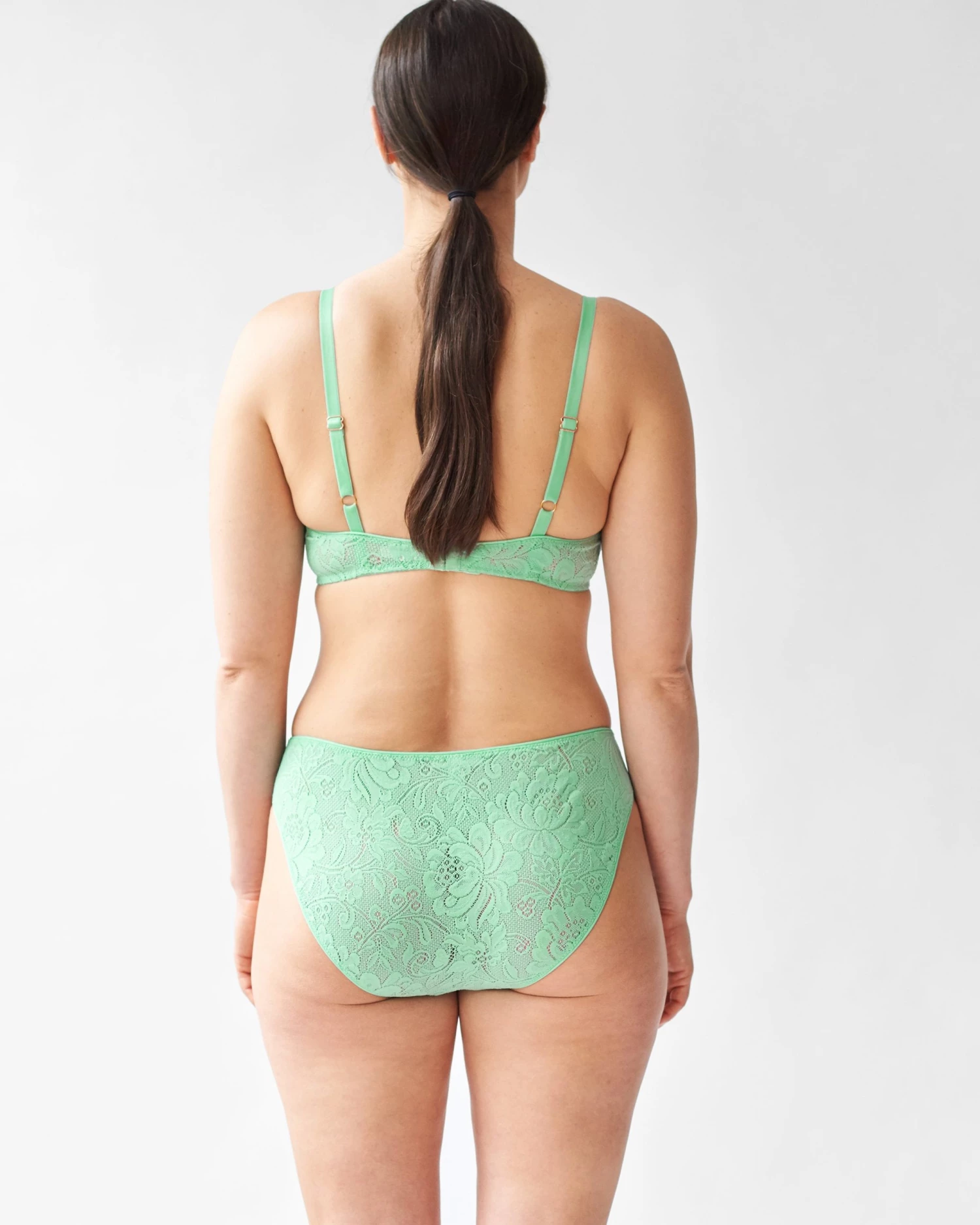 Lengthen your legs with this high cut bikini bottom made from soft French stretch lace. Wear it with the Waverly Underwire Bra or Tamara Bralette. See additional colorways.