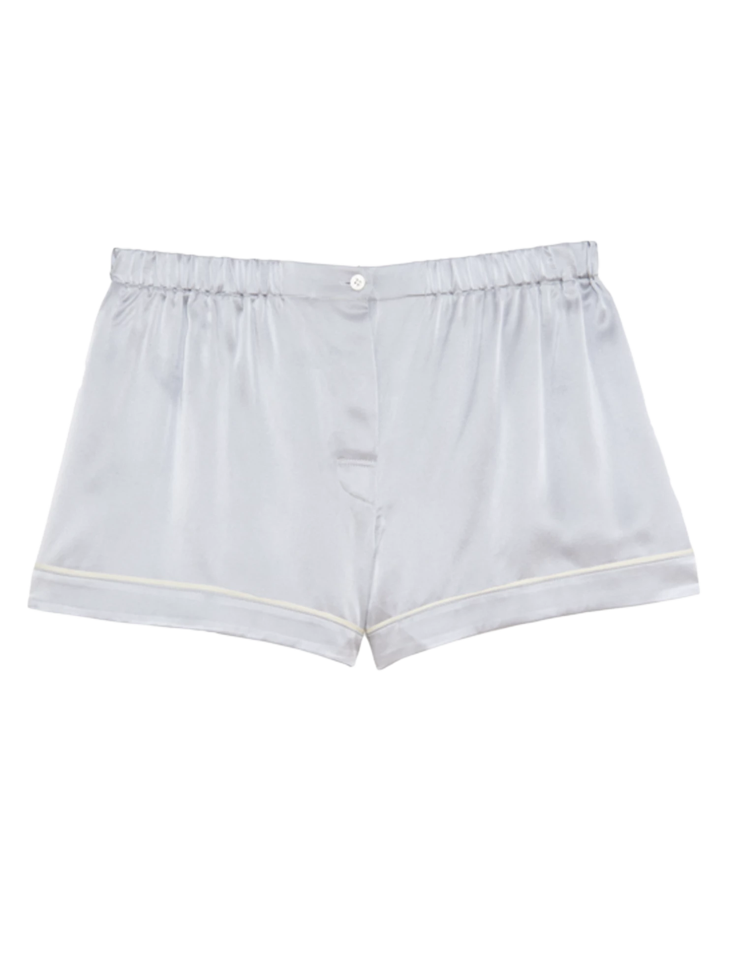 Washed Silk Charmeuse boxer short. Contrasting delicate silk chiffon piping and mother of pearl buttons. See the matching Shelby Pajama Top. See other available colorways here.