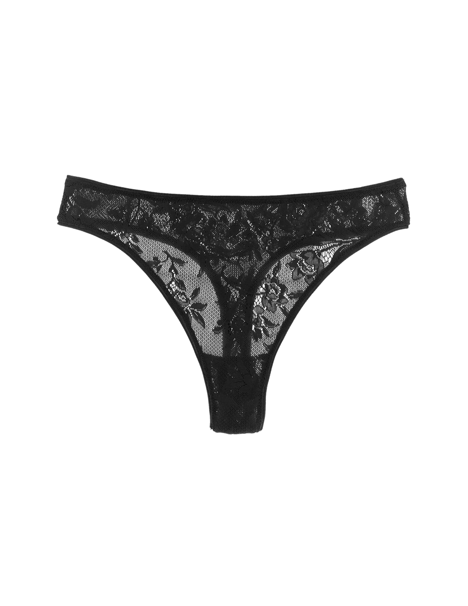 Minimal and chic this mid-rise thong is cut from a smooth French stretch lace that wears seamlessly under your clothes. Wear it with the Waverly Underwire Bra, Tamara Bralette or the Valentina Bralette.
