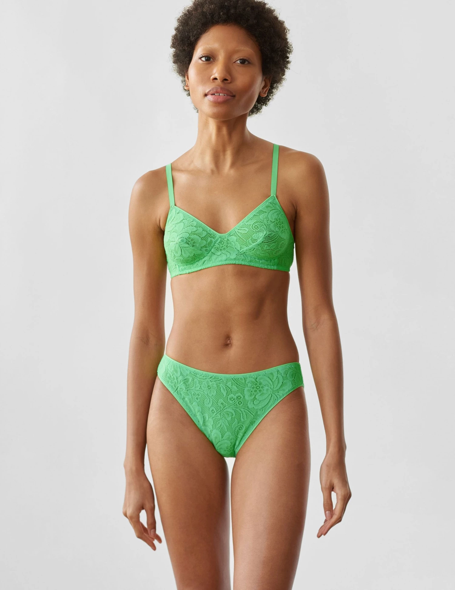 Cut in soft French stretch lace, the Tris is a classic bikini shaped panty that combines classic sophistication with comfort. Wear it with the Tamara Bralette. See additional colorways.