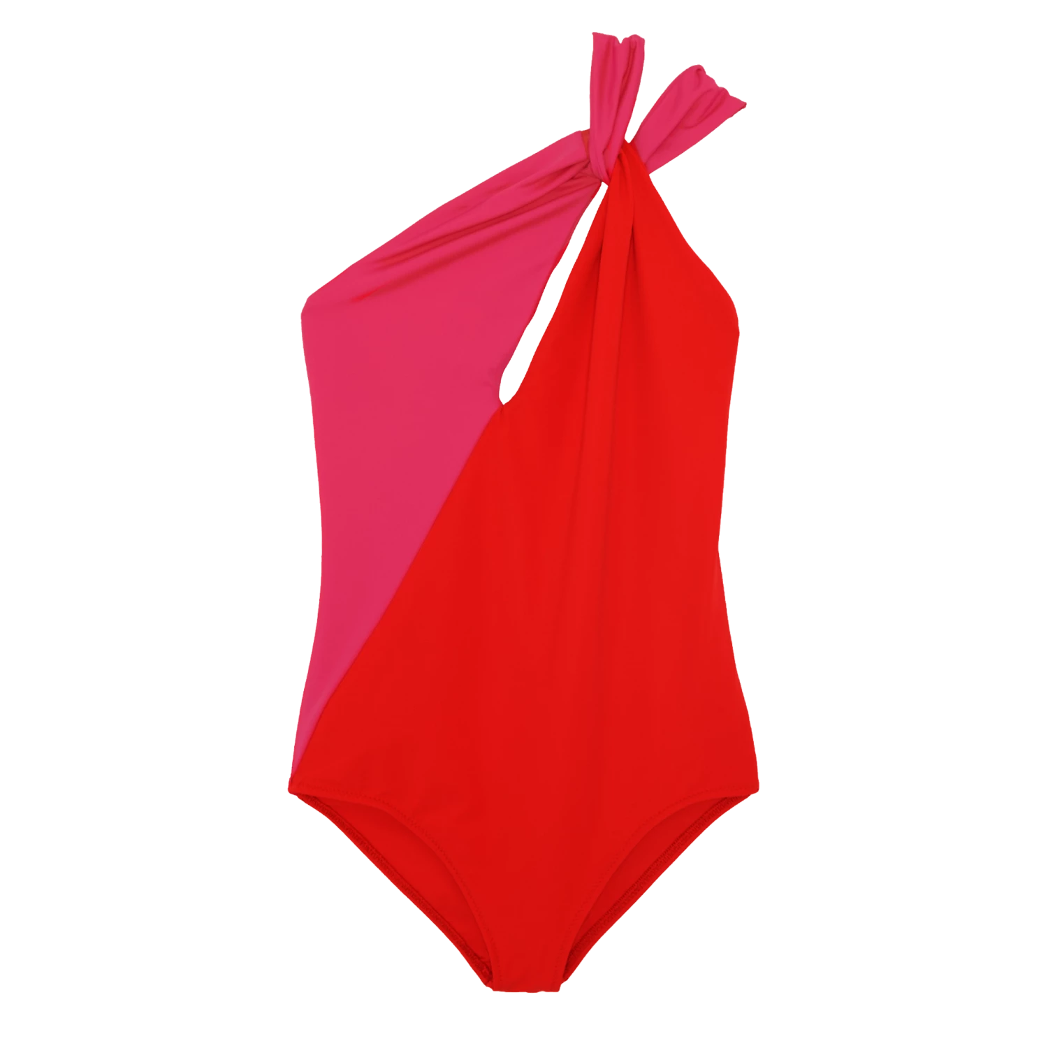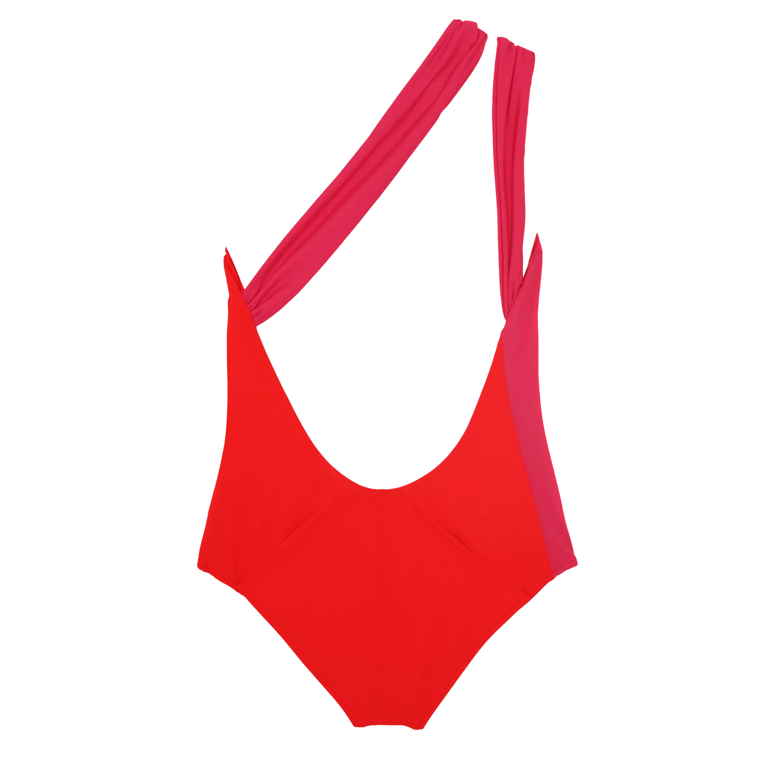 An asymmetrical one piece designed with a diagonal seam across the front that leads to a quiet splice where wide straps loop through and dive down the back for a graphic and modern look. See additional colorways here.