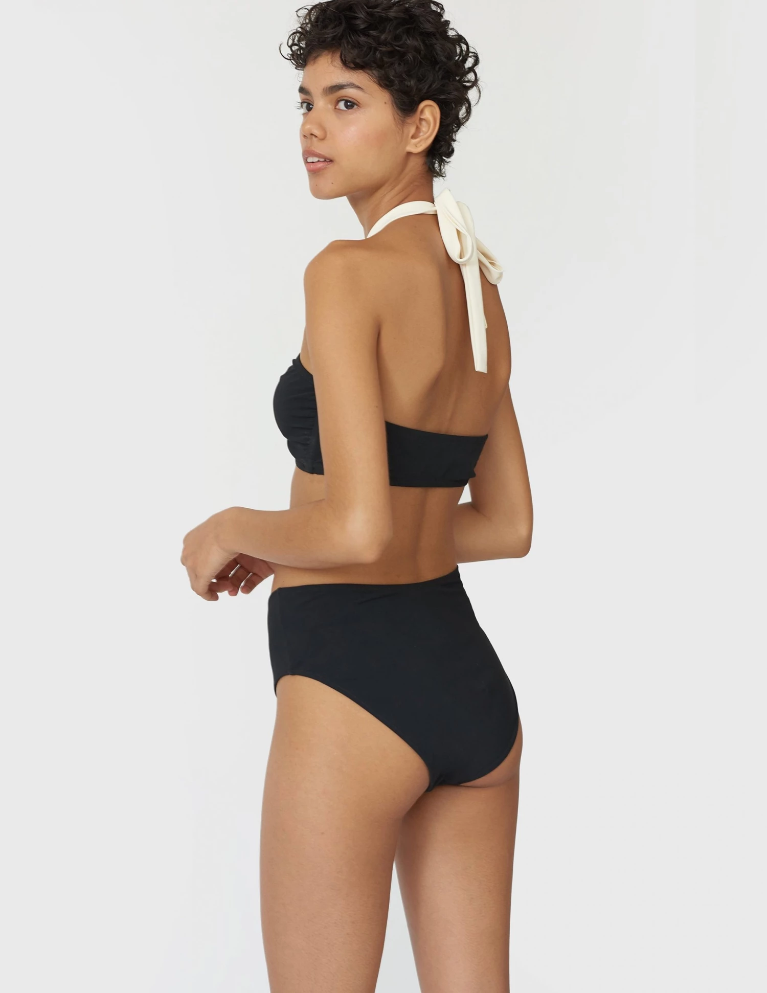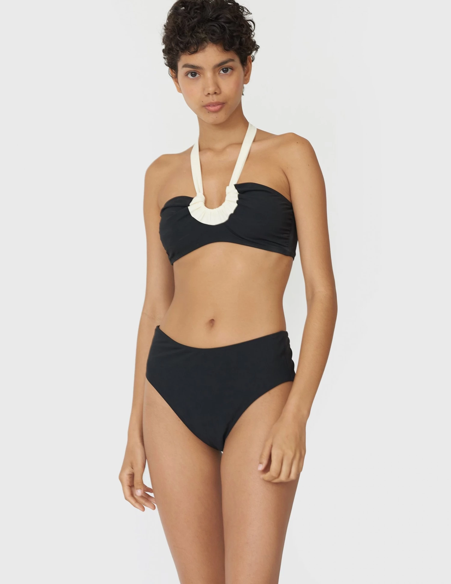 This bandeau style bikini top features a fun color-blocked ring that can be styled opened or closed with the versatile halter style tie. Pair it with the Ulla Hipster. See additional colorways.